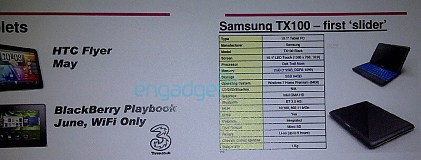 Finally, we get to know that Three will also be getting the HTC Flyer tablet in May, the Wi-Fi-only BlackBerry Playbook in June and the excitingly looking slider netbook from Samsung with a 10" touchscreen with a resolution of 1366 x 768 pixels, announced at CES, further down the road.